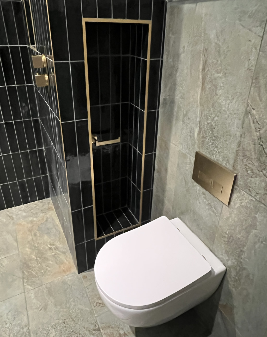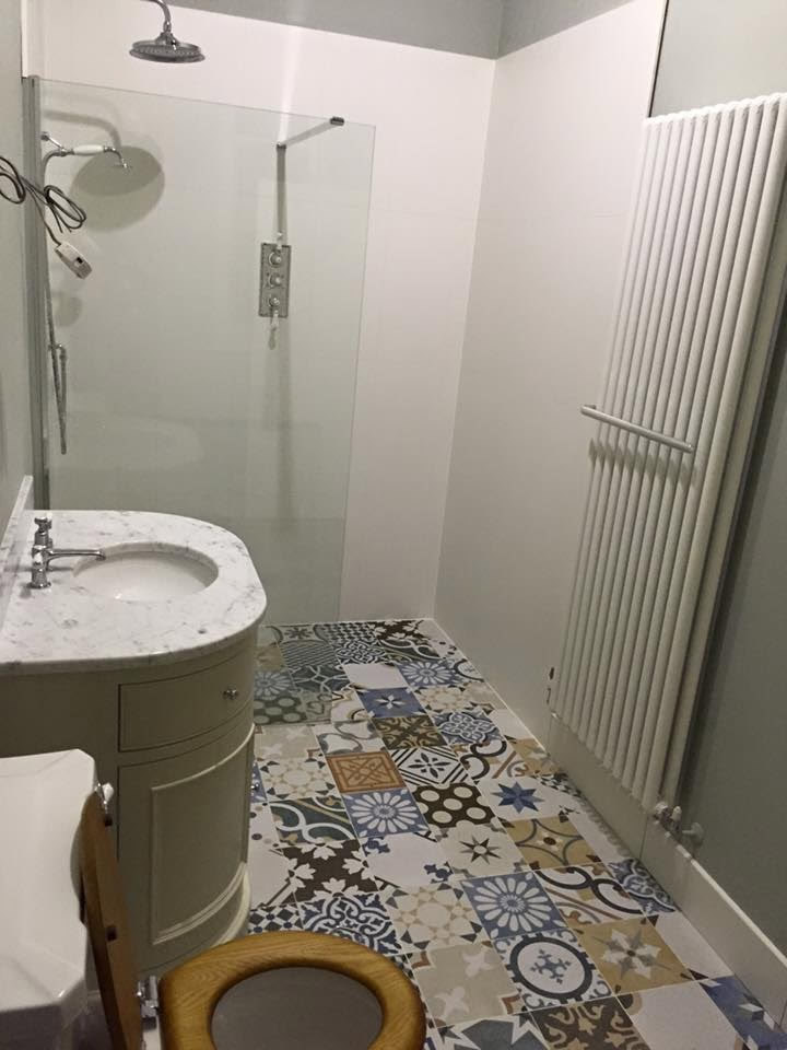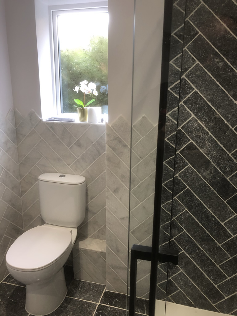 Wall hung toilet and basin unit as part of wet-room conversion.